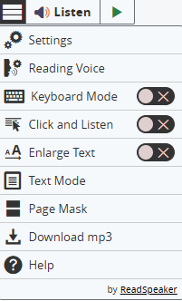 - Click the "Listen button". ReadSpeaker will read the contents of the page aloud.